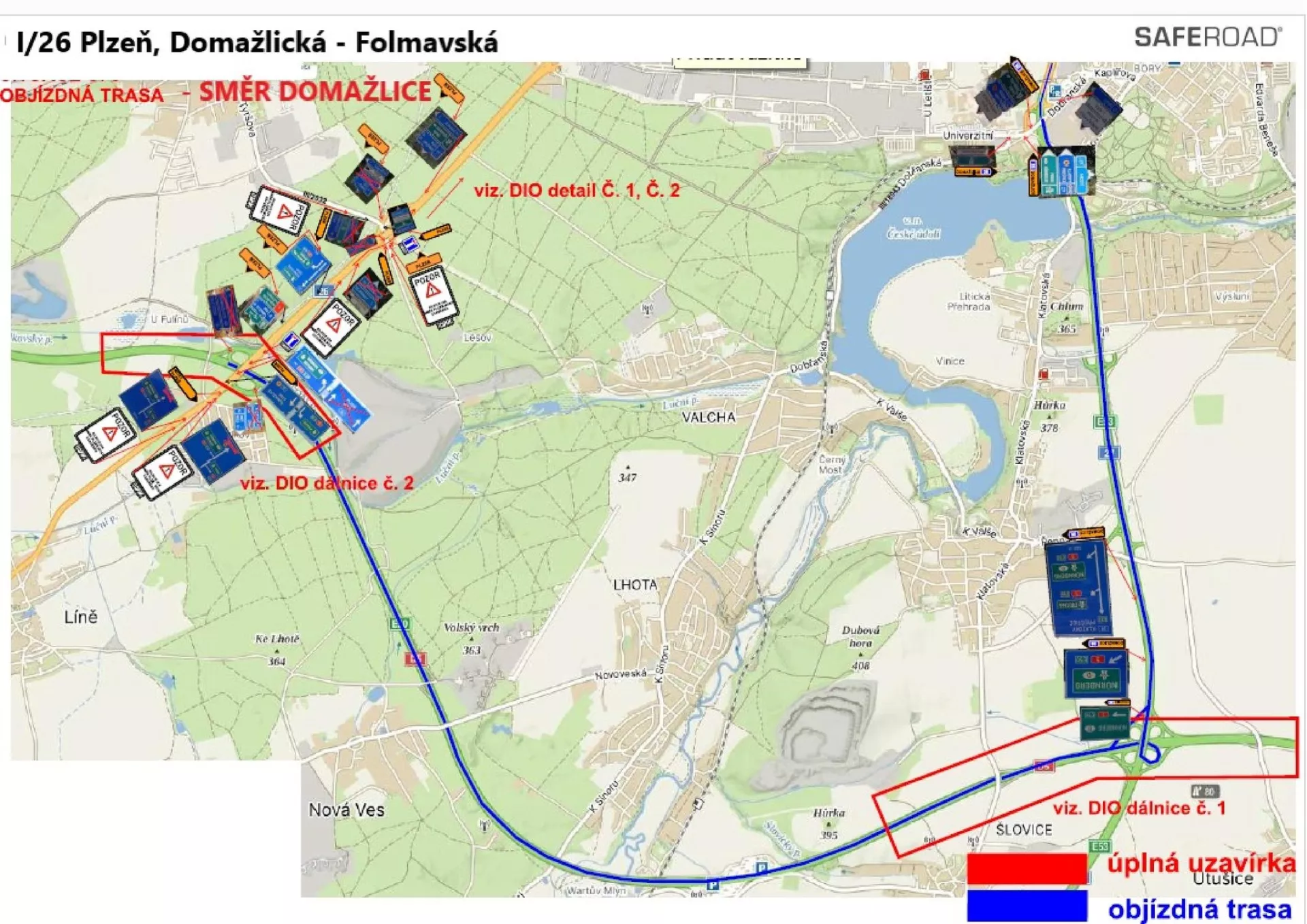 Během obou etap dojde na uzavřených ramenech k pokládce inženýrských sítí a instalaci zařízení pro budoucí řízení semafory. Po dobu prací je provoz veden přes náhradní objízdné trasy pro každý směr. Např. pro směr Domažlice po silnici I/26 je objížďka vedena po silnici I/27 směrem na Klatovy a dálnici D5.
